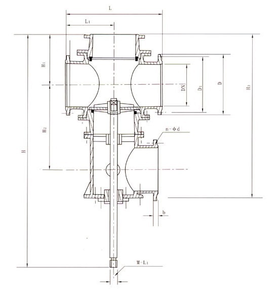 SQ48X-1 three-way switching valve (also known as bottom switching), by the four-way body, valve seat, valve plug, stem, sealing ring and other parts. The valve stem and valve plug move up and down to realize valve opening and closing. The upper and lower valve seats are equipped with a silicon rubber sealing ring to seal up and down two links respectively.