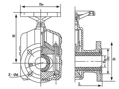 當(dāng)順轉(zhuǎn)手輪時(shí),使大小閥桿同時(shí)帶動(dòng)上下閘板,壓縮管套,進(jìn)行關(guān)閉,反轉(zhuǎn)即行開(kāi)啟,這樣,閘板在導(dǎo)柱之間上下往復(fù)完成閥門開(kāi)閉工作。另外,因橡膠管套承力,因此在開(kāi)關(guān)時(shí),操作人員旋轉(zhuǎn)手輪時(shí)只要感到適量抵觸,均己達(dá)到開(kāi)閉點(diǎn), 切勿盡力或多人輔助,禁用其他工具開(kāi)閉。