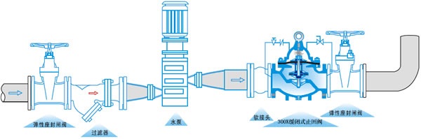 300X緩閉止回閥由主閥、單向閥、針閥、球閥、微形過(guò)濾器和壓力表組成水力控制接管系統(tǒng)。利用水力自動(dòng)操作,可使主閥的開啟或關(guān)閉速度。防止水鍾水擊的產(chǎn)生,以達(dá)到緩閉消聲的效果。