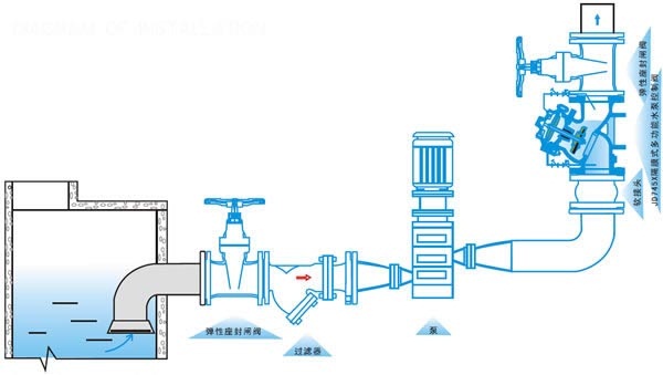 本產(chǎn)品用于高層建筑給水系統(tǒng)和其它給水系統(tǒng)的水泵出口管路上,防止和減弱水泵啟閉時管線的水錘水擊,防止水倒流保護水泵,維護管路。