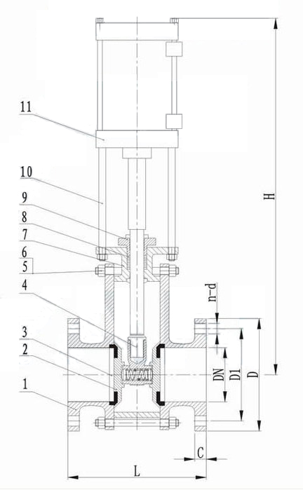 當氣缸通過閥桿帶動閘板下行時,閘板與閥體密封面吻合,將通道切斷,即為關(guān)閉;反之則為開啟。